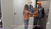 Доставщик пиццы перепутал заказ и принес русской красотке пиццу с мясом, а она его не ест. Клиентка была очень недовольна, но предложила исправить ситуацию сексом - пришлось ее трахнуть прямо на кухне и накормить спермой!