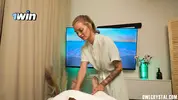 Замужняя молодая массажистка массировала ноги на спортивном массаже и случайно увидела большой и красивый член своего клиента. Как призналась массажистка, муж ее не ебет, пришлось парню удовлетворить ее прямо на массажной кушетке!